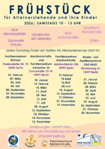 Jeden Samstag findet ein Treffen für Alleinerziehende statt (siehe Flyer)